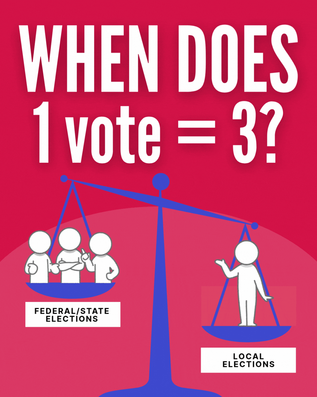 Your vote in these elections is, at minimum, 3x more the percentage of the total than in state/federal elections!